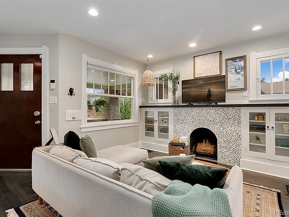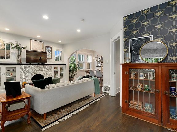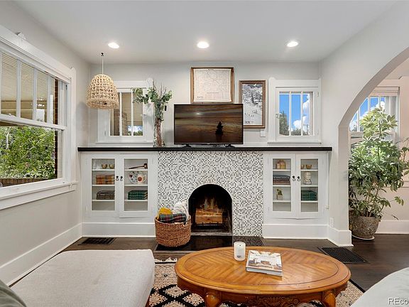 - Description: Hardwood Floor, Wood-Burning Fireplace With Tile Surround, Built-In Cabinets, Recessed Lighting, Arched Entryway Open To The Dining Room