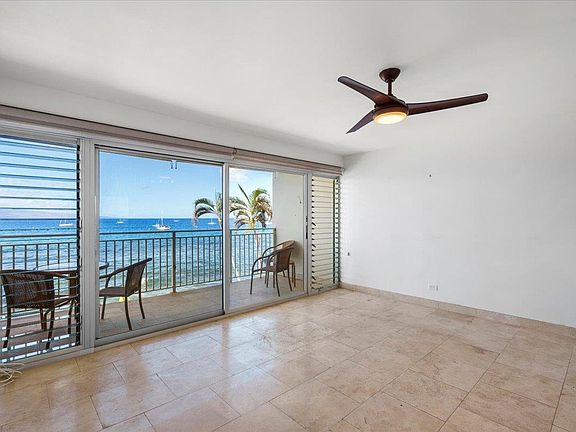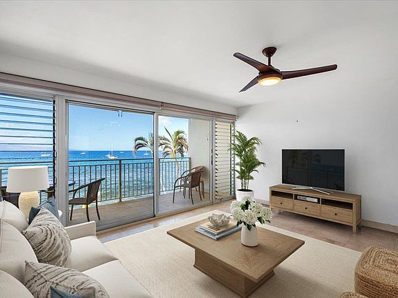 Along the shores of Lahaina, Sea Turtles play in the surf. Sailboats moored offshore rise and fall with the tides. Lanai sits serenely across the ‘Au ‘au Channel. Another scarlet sunset streaks the sky. These are the day-to-day views from Lahaina Roads. This one-bedroom, one-bathroom direct oceanfront condo is part of a small complex of 42 units. It features quartzite countertops, an in-unit washer and dryer, and travertine floors. Lahaina Roads offers covered parking, an on-site manager, and an oceanfront pool and barbecue area. Its North Front Street location is a short distance from the Cannery Mall, Lahaina Gateway Center, and fantastic restaurants like Mala, Honu, Star Noodle, and Aloha Mixed Plate. Lahaina Roads is just finishing up extensive restoration. New front doors, windows, spalling work, and fresh exterior paint highlight the revitalization.
