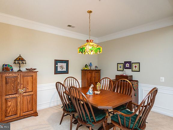 Discover elevated living in this sophisticated 2-bed, 2-bath condo nestled on the third floor of the exclusive 55+ Joppa Forest community. As you enter, the dining room welcomes you with its plush carpet, chair railing, and exquisite crown molding, seamlessly flowing into the spacious living room—a perfect setting for relaxation or entertaining. The well-appointed kitchen boasts hardwood floors, recessed lighting, granite countertops, and sleek stainless steel appliances. A designated table space adds to the charm, creating a delightful area for casual dining. Adjacent to the kitchen is a versatile bonus room, ideal for a home office, playroom, or personal workout space. The primary suite exudes luxury with tray ceilings, a generous walk-in closet, and an attached bath featuring dual vanity sinks. The second bedroom and bath provide additional comfort and convenience. Step outside to the balcony to savor moments of tranquility, and take advantage of the extra storage space for added practicality. With its thoughtful design and upscale features, this condo offers a refined living experience within a vibrant 55+ community. Experience the epitome of comfort and style in this Joppa Forest gem.