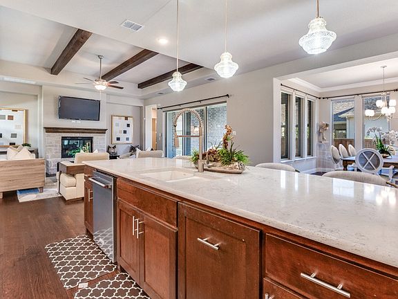 Beautiful single story home located on the exclusive island part of Viridian Village. Highly sought after location. Home is like new with custom designs throughout. Terrific floor plan which is on line to view. A unique entrance welcomes you with an expansive front porch. Traditional hardwoods are found throughout except for carpet in secondary bedrooms. Window coverings are throughout on all windows. Home is energy efficient, built by Drees Homes, and ready for new owners. Gourmet kitchen has commercial grade appliances w 6 burner gas cook top & vented exhaust hood over stove. Abundant cabinets & counter space. Smart Home has extended WIFI, Nest Doorbell, thermostats are controlled by remote and security is owned. Carrara marble in Master Bath. Granite in other baths. 7 Ceiling fans in all bedrooms & living areas. remote screened in patio with fireplace & gas logs. Tankless hot water. To have all this on one level living is extraordinary.
