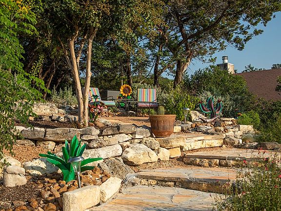 1403 Lucky Ridge in Kerrville, Texas, is a true hill county gem. 3 Bedroom, 2.5 Bathroom, Large Combo Living/Dining area cornered by a cozy rock fireplace. The Open Concept Kitchen is newly remodeled. Drink your morning coffee while enjoying the lovely views from the large front and backyard patios. This home also features a workshop area adjacent to the spacious attached 2 car garage. The backyard includes a Greenhouse, Chicken Coop, numerous mature fruit trees, and gardening areas. The Stucco exterior encompasses a beautiful courtyard and a patio featuring multiple fountains.