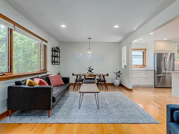 Beautifully updated bungalowWarm hardwood floorsTastefully updated kitchenSleek quartz countertopsCrisp white cabinetryTwo main-floor bedroomsLarge recreation room