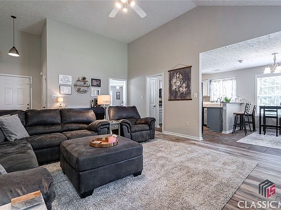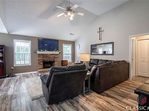 This well maintained and adorable three bedroom/ two bath home in Statham features a large living room with new LVP flooring, a wood burning fireplace, and vaulted ceiling. The split bedroom plan offers you a private primary suite with a large walk-in closet, trey ceiling, and sitting room/office. The primary bath has new granite countertops, new double sinks and faucets, garden tub and separate shower. On the other side of the home you will find the second full bath, which has also been updated with new granite countertops, sink, and toilet, along with the two additional bedrooms. The kitchen has been updated with new granite countertops, kitchen sink and faucet, painted cabinets and new pulls. The fenced backyard offers plenty of room for family gatherings, kids to play, and pets to roam. There is a separate garden area with pepper, zucchini, yellow squash, cantaloup, and cucumbers growing. This home has been lovingly cared for inside and out. The yard is starting to pop with color showing off the seven rose bushes and day lilies.