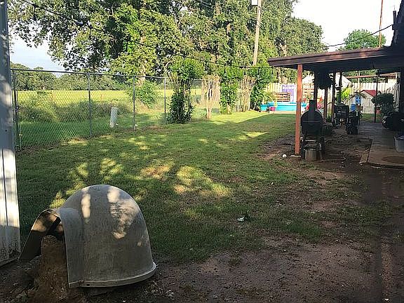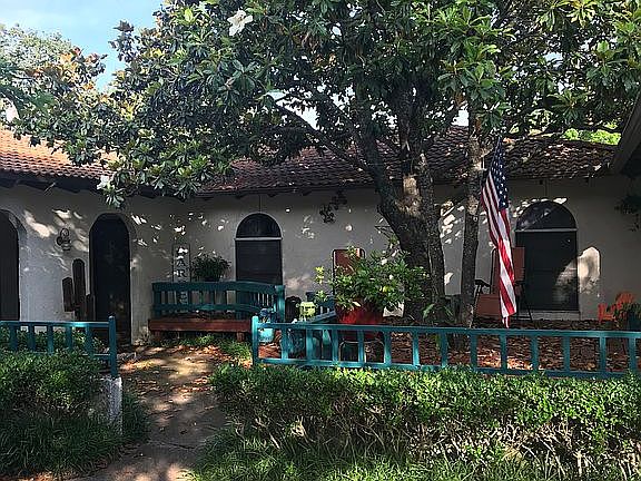 Unique Spanish style home in highly sought after neighborhood. Home offers front deck with shaded canopy from a beautiful mature magnolia tree. Driveway is oversized for plenty of off-street parking. 2 car attached garage with storage cabinets and utility closet. There is also a 30amp outlet. Backyard has covered porch, metal storage building, and pasture land behind to watch the deer and wildlife. Yard has sprinkler system in place that needs wiring repair. Inside you’ll find 3br 2b. Oversized closets in bedrooms. Large sunken living w/built-ins and wood fireplace. Dining area open to living. Kitchen could use new lower cabinets but are fully functional. Combination laundryroom and pantry. Home has central heat/air and is all electric. Home is being sold AS IS. With fresh paint and minor repairs this will make a great family home in a wonderful neighborhood!