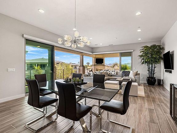 Palm Desert | The Retreat at Desert Willow - Residence Four - Enclave Model | South-Facing Mountain Views - Welcome to The Retreat at Desert Willow -- the epitome of desert luxury living. This rarely available Residence Four Enclave has been gently lived in part-time and is ideally situated on the premier south side of the community, capturing panoramic mountain views. Step inside your private-elevator-accessed penthouse, the largest floor plan offered, spanning nearly 2,600 sq. ft. with 3 bedrooms and 3 bathrooms. A true indoor-outdoor experience awaits with dual retractable glass sliders opening to an impressive 600-sq.-ft. wraparound veranda -- complete with a sleek fireplace and multiple seating and dining areas, all framed by dramatic mountain vistas. Inside, elegance meets functionality with porcelain plank flooring, surround sound throughout, and a chef's kitchen featuring Bosch stainless-steel appliances, a wine refrigerator, custom tile backsplash, and quartz countertops. Modern light fixtures, recessed lighting, and designer window coverings complement every space. Additional upgrades include a whole-home water softener, epoxy-finished garage with custom storage, tankless water heater, and more. As a resident of The Retreat, you'll enjoy exclusive membership to Desert Willow Golf Club, included with HOA dues -- plus access to resort-style amenities and a sophisticated, low-maintenance lifestyle. Welcome home to The Retreat -- where elevated living meets effortless luxury.