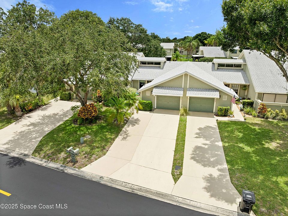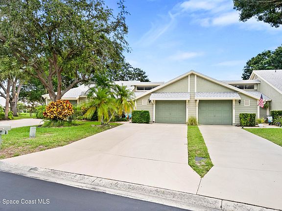Furnished & turnkey, this remodeled villa in Villas at Village Green offers peace of mind with a 2021 Carrier A/C, 2021 roof, & 2017 Rheem water heater. Enjoy vaulted ceilings, shiplap accent walls, and abundant natural light. The updated galley kitchen features marble countertops, soft-close cabinets, and a tile backsplash. Both bathrooms are fully renovated with tile and walk-in showers with full-glass sliders. An extended enclosed porch adds flexible living space, cooled by stand-alone AC units and complete with a tiki bar. Oversized, double-insulated windows and leaf-guard rain gutters round out this low-maintenance, move-in-ready home.
