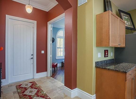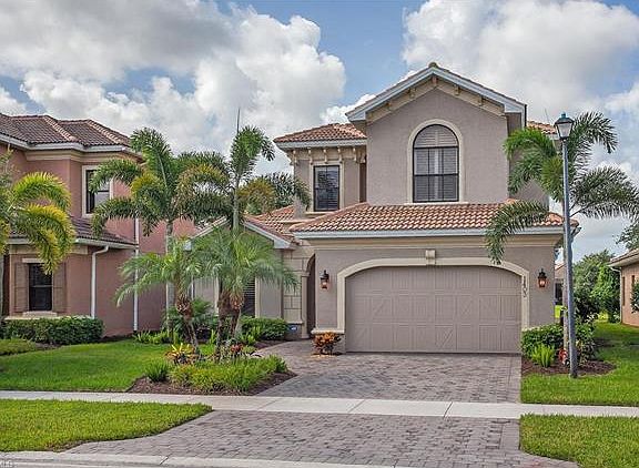 NEW EXTERIOR PAINT / PRICED TO SELL - Picturesque 3 bedroom + den, 2 1/2 bath pool home with an unobstructed lake view in the heart of Naples. This open floor plan boasts beautiful Travertine flooring with high ceilings, crown molding, hand-forged iron stairway railing, and granite counters. Large master bedroom on main floor with oversized tub with separate pool access. Custom staircase takes you to upstairs guest bedrooms with separate bath. All bedrooms feature California Closet design for organization of your personal items. Upgrades include coffered ceilings, accent lighting, crown molding, granite counters, and plantation shutters. Large laundry room with new energy efficient LG washer/dryer w/utility sink. SS Bosch dishwasher and SS LG fridge. Mechanics of this home feature new AC units, hot water heater, and pool heater within the last 24 months. This gem of a property is centrally located with easy access to Mercato, downtown, the gulf, access to I-75, in Collier School District. The gated community of Andalucia is a small, well maintained community with affordable HOA fees. This is a great home for raising a family, or, for permanent or seasonal residents!