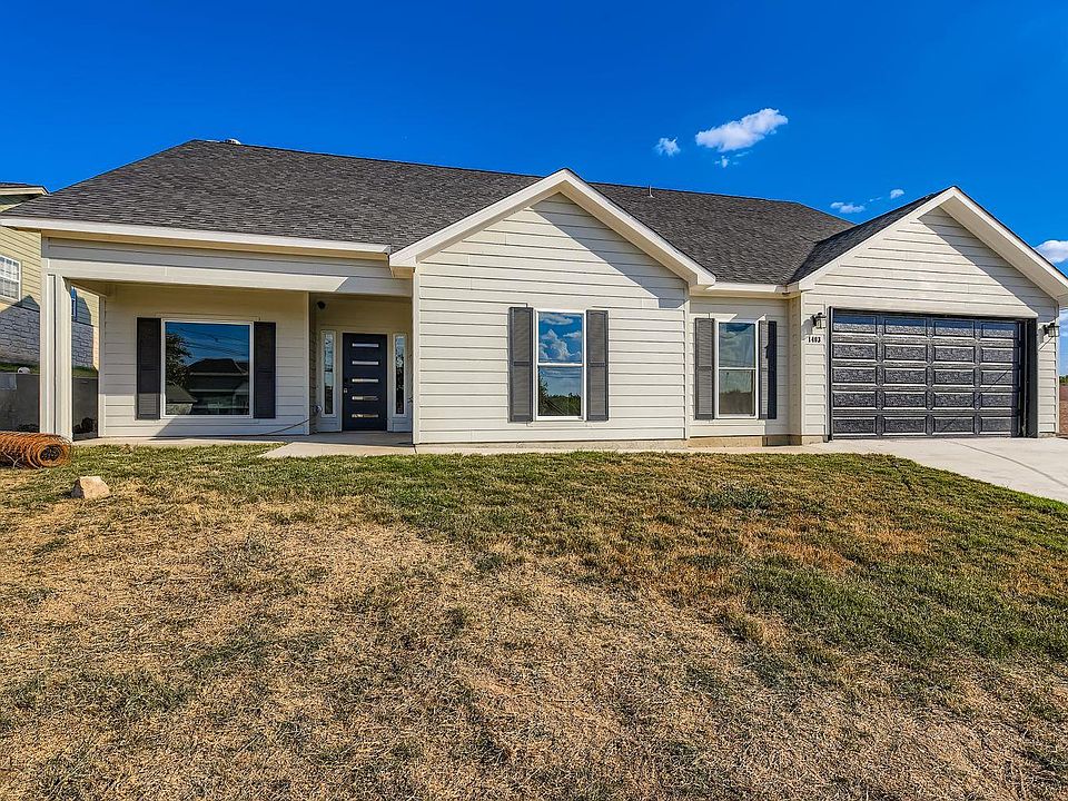 Welcome to this 2,684 square feet, four bedrooms, three bathrooms, and a two-car garage, complete with a game room and office. Spacious, open-concept living area featuring a wood-burning fireplace, large picture windows, and abundant natural light. This space flows seamlessly into the kitchen and dining area, which showcase granite countertops, a herringbone subway tile backsplash, soft-close cabinetry, and stainless steel appliances. A large pantry is conveniently located just off the hallway. The primary bedroom offers ample space for a king-size bed and a sitting area, along with his-and-her vanities and closets, a large soaking tub, and a walk-in shower. Downstairs, you'll find three additional bedrooms and a sizable laundry room equipped with a sink and built-in hanging storage. The oversized, finished garage includes a small work area and a large storage closet. Upstairs, there's a versatile game or flex room, a small office or additional storage space, and a full bathroom. The exterior features a sizable and private backyard with newly laid sod and a covered patio.