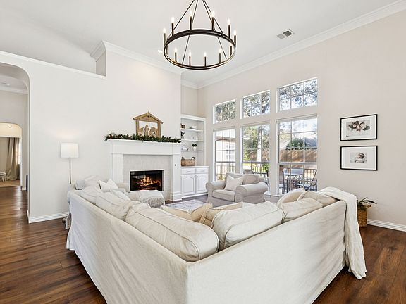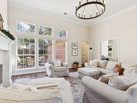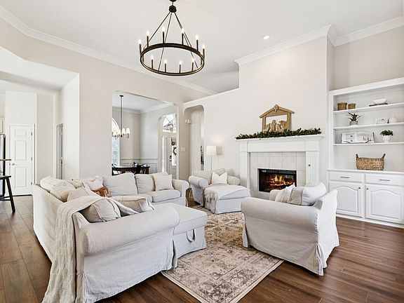 Welcome to 1403 The Lakes Court, a beautifully maintained one-story residence offering comfort, privacy, & serene surroundings in the sought-after Lakes of Highland Oaks community. Built in 1996 & offering 2,618 square feet, this thoughtfully designed home sits on a quiet cul-de-sac with no houses directly across the street—only a picturesque HOA-maintained pond with fountains, walking space, & occasional fishing opportunities. The setting provides a rare sense of openness and tranquility while still being close to everyday conveniences. Inside, the home features updated luxury vinyl plank flooring, modern light fixtures, & neutral paint tones that create a clean, cohesive look throughout. The spacious layout includes three bedrooms plus a dedicated office with built-in shelving & French doors, offering flexibility for work, creative pursuits, or additional guest space. The formal living area is enhanced by built-ins & a see-through fireplace that adds warmth and visual interest to two rooms. An oversized dining room offers abundant room for gatherings or special occasions. The kitchen is equipped with stainless steel appliances, granite countertops, an upgraded dishwasher, & ample storage. The generously sized primary suite features dual closets, granite-topped vanities, & a comfortable layout designed for everyday ease. Recent major improvements include a new air conditioner & furnace (2024) & a newly stained fence (2025). Outdoors, the courtyard-style patio & lush landscaping provide a peaceful retreat surrounded by mature trees that offer shade & privacy. Unique lot placement allows for easy outdoor entertaining thanks to the cul-de-sac design & the way driveways & yards face different directions. Bear Creek nature trails & the Keller Smithfield activity node are great for running,walking, & outdoor activities. With its thoughtful updates, relaxing views, & inviting layout, 1403 The Lakes Court offers a wonderful blend of comfort, charm, & natural beauty.