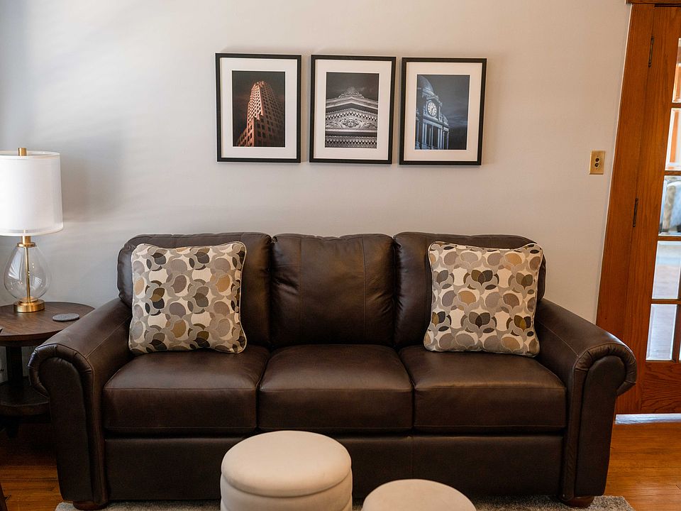 Original hardwood floors, ledded glass doors, original lamps, and unique touches throughout the home. Beautiful modernized full bath and half bath. New furniture and original art work from one end of the home to the other. The rental includes the main floor of the two story home. This home has been a successful Airbnb for 3 years.