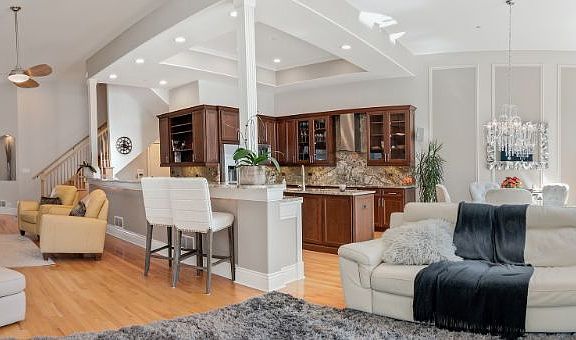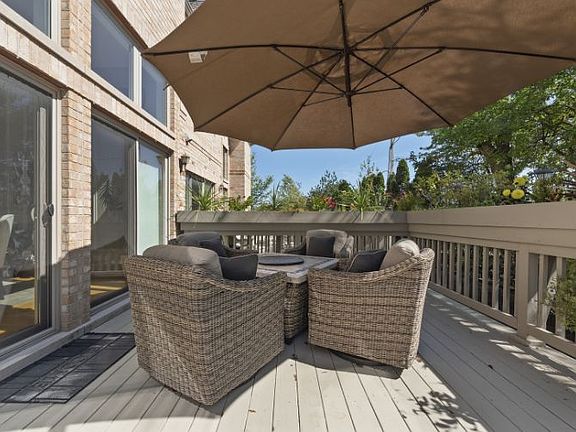 CHECK OUT THE ONLINE VIRTUAL TOUR 24 7. WE ARE STUNNING AND READY TO GO!! Over 4200 square feet of finished luxury in Maison Du Comte! This rarely available duplex townhome unit boasts one of kind high end upgrades throughout. The expansive open floor plan is accentuated by 12 ft ceilings, seamless hardwood floors and walls of windows. The abundant natural sunlight could only be upstaged by the gorgeous crystal chandeliers and upgraded lighting fixtures. Gourmet kitchen includes high end granite countertops and backsplash, Bosch appliances, kitchen island addition and breakfast bar. Master suite includes sitting room office, spa bath and a custom walk in closet. Two additional upstairs bedrooms have walk in closets with custom organizers as well as a hall shoe closet. Sunlit finished english basement includes family room, full bath, 2nd fireplace, and plenty of storage. Enjoy outdoor entertaining on the large, freshly painted deck. Attached two car garage w epoxy floor and storage cabinets. See upgrade list under additional information. Highly-rated Fremd HSD. Welcome Home!