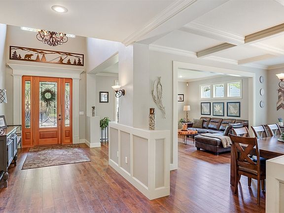 Custom built, estate-sized home on 1.25 acres. Enter to gleaming engineered hardwood floors & 9' ceilings throughout. High-end finishes, wide molding & boxed beam ceiling detail. Chef's dream kitchen w/walk-in pantry, custom cabinets, gleaming stainless steel & GE Smart-hub vent hood. Gorgeous primary suite features spa-like en suite bath & custom walk-in closet w/adjoining laundry room. Giant upper level bonus room w/wet bar, custom lighting & surround sound. 2 guest rooms w/walk-in closets & office/studio upstairs. Entertainment-sized, covered deck w/cedar tongue & groove ceiling, quartz-topped counter & fridge. Manicured, fully-fenced grounds, gated entry & long private driveway. 20x20 shop & covered RV parking w/water & power. Must See!