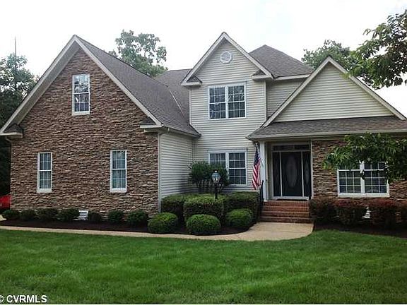 WATERFRONT BEAUTY! Lovely vinyl-sided 3,052 sq ft transitional w/ STACKED STONE accents on beautiful LAKE FRONT LOT boasts STUNNING VIEWS! New 3-level composite deck w/retractable awning overlooks well-landscaped SHADED BACK YARD featuring winding brick walkway to BOAT DOCK w/electricity & water. Dock is perfect place to enjoy July 4th & Labor Day Fireworks over Lake! WOOD FLOORS in Foyer, Dining Rm,Kitchen, Sun Rm, and 2-story Family Rm.Convenient large 1st FLOOR MASTER w/ RENOVATED BATH. 2nd floor has 3 generous Bedrms (#4 is 24' x 13'),versatile Loft & updated Bath. 2-car Garage,paved drive/over-sized parking apron,irrigation system,security system. New Heat & Air in 2010 & 2011. Excellent Chesterfield County Schools. EZ access to recreation,highways,shopping & restaurants. WOW !!!