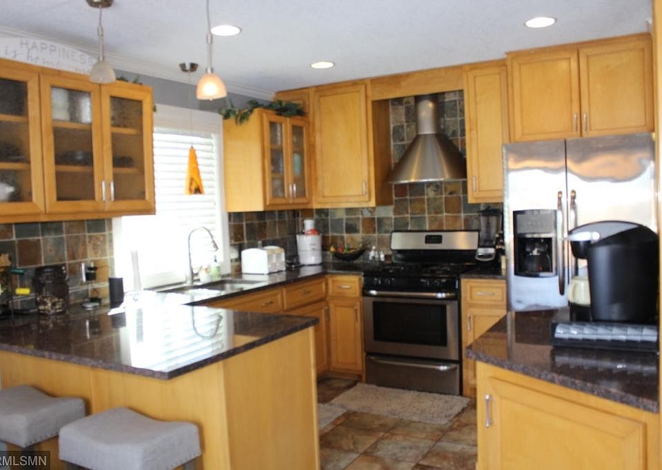 Fish Lake Park neighborhood in southern Maple Grove. Beautifully updated split entry in quiet, friendly and well established area. Maple cabinets, granite countertops, open floor plan newer SS appliances, deck, large 4 season porch wired for hot tub, walks out to fenced back yard with view of the park woods from porch & deck, large garage. Easy access to newly freeways, close to endless shopping restaurants, near beach, trails, boat launch, dog park, etc. Abundant wildlife.