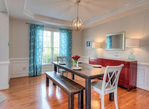 Welcome home to gorgeous! When you arrive you will be smitten w/the brick front exterior & 2 car side entry garage. Inside the 2 story foyer welcomes you w/gleaming hardwoods running throughout most of the main level. To your L is the dining room w/chandelier & shadowbox details & to your R is the living room w/crown moulding. The 2 story family room is impressive boasting tons of natural light, carpet, & a gas fireplace. Adjacent is the marvelous chef's kitchen w/island, ss appliances, solid surface counters, freshly painted white cabinetry, & fantastic wet bar w/wine fridge! Just beyond is a wonderful mud/utility room w/a desk & tons of storage, making for an awesome office area. A dedicated laundry room & 1/2 bath complete the main level. The 2nd floor hosts a large master bedroom w/tray ceiling & an attached master bath w/tile flooring, garden tub, separate shower, & new dual vanities! 3 other nice sized rooms & a full hall bath w/dual sink vanity round out the 2nd floor. A finished 3rd level, w/full bath, makes a perfect 5th bedroom, game room, or home theatre! Like to be outdoors? Enjoy your fenced in back yard w/storage shed from your amazing deck or paver patio! Tour today!