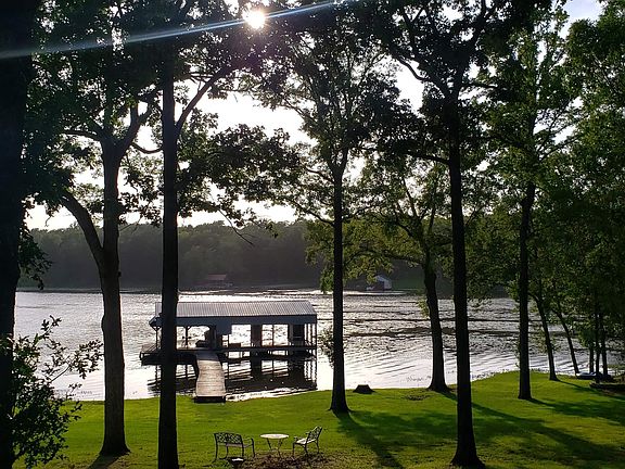 Waterfront living on beautiful Lake Tyler with two residences on 3 acres. Boathouse with two stalls and covered deck. Detached garage with additional living quarters ,parking and space for storage and entertaining. Main residence is waterfront 2/2 and upstairs 300 sq ft bonus room with brand new metal roof and 1 year old HVAC system. Secondary residence boasts 1800 sqft 4 bed/2 bath with vaulted ceilings. Sellers offering 10k at closing for flooring /upgrades completion and 1 year home warranty up to $750.