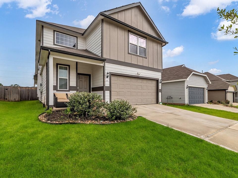 FULLY FURNISHED. WASHER, DRYER, FRIDGE. AVAILABLE FOR LEASE AND SHOWINGS STARTING 10/12/2025 Discover your dream home in River's Edge, Conroe, TX, within the sought-after Woodlands school district. The Briscoe plan offers a spacious two-story layout with impressive foyer ceilings. This residence includes 4 bedrooms, 2.5 bathrooms, a game room, and a 2-car garage. The Owner's Suite, located on the first floor for added privacy and convenience, features a charming bay window, separate tub and shower, and a walk-in closet. The kitchen is a chef's delight, equipped with 42" cabinets, granite countertops, and stainless steel appliances. Enjoy outdoor living with a fully sodded yard, sprinkler system, and covered patio. Make River's Edge your home!