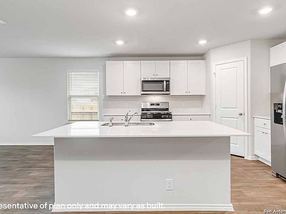 Step into The Tobin floorplan at Riverstone at Westpointe in San Antonio, TX, a single-story home featuring 3 bedrooms and 2 bathrooms. The Tobin also offers 2 classic exterior with siding, a 1-car garage and 1412 square feet of comfortable living space. The Tobin features an open-concept layout that blends seamlessly to creat the perfect every day space designed with you in mind. An elongated foyer leads you to the kitchen and dining space before flowing into a grand living room. The kitchen features quartz countertops, gleaming stainless steel appliances, shaker style cabinets and an eat-in bar that overlooks the dining area. Your main bedroom suite is located off the living area toward the back of the home and includes a walk-in closet and a relaxing bathroom space. The ensuite bathroom includes a single vanity sink with a spacious quartz counter top, shaker style cabinets and combined shower and bathtub. You'll find quality carpet and spacious closets in all of your secondary bedrooms, located off the front foyer of the home. Use these rooms as offices, playrooms or other bonus spaces. Head out the back door located off the living room to find a fully landscaped yard with a state-of-the-art irrigation system. Additional features include sheet vinyl flooring in entry, living room, and all wet areas, quartz counter tops in all bathrooms and our HOME IS CONNECTED base package. Using one central hub that talks to all the devices in your home, you can control the lights, thermostat and locks, all from your cellular device.