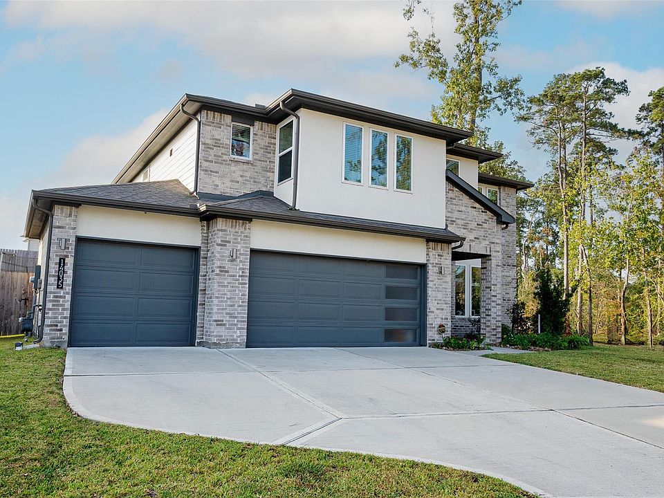 Modern D.R. Horton home built in 2022! This beautifully maintained two-story residence feels almost brand new and offers a 4-car garage, high ceilings, and a spacious primary bedroom downstairs. Designed for comfort and versatility, it features 4 bedrooms, 3.5 baths, a game room, media room, and an additional flex space that can be used as a home office, spare room, or formal dining. The elegant kitchen includes stainless steel appliances, a 5-burner gas cooktop, quartz countertops, and 42" flat cabinets. Enjoy vinyl plank flooring on the first floor, a tankless water heater, covered patio, and full sprinkler system. Nestled on a quiet cul-de-sac in the desirable Fosters Ridge community, offering a pool, playground, and clubhouse. Backs up to the reserve with incredible forest views. Zoned to The Woodlands schools!