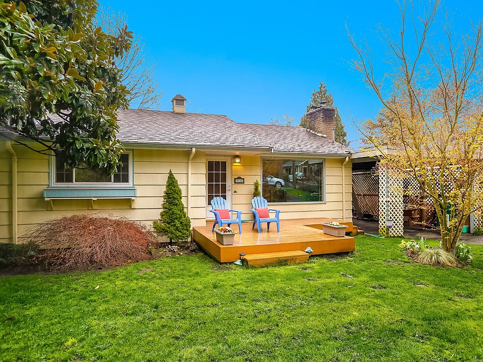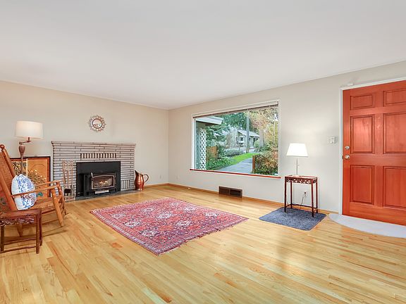 Darling mid-century Olympic Hills home is move in ready! Two bedrooms on main floor w/ oak hardwoods & updated bath. Efficient wood burning fireplace insert keeps living room cozy. Well lit den & family room w/ cedar lined closet for off season storage in partially finished lower level. Family room opens to a large, fenced back yard with fruit trees, raspberries & raised beds – your urban oasis. Covered carport w/ direct kitchen entry. Easy commute via I5 or a short walk to bus stop on 145th.