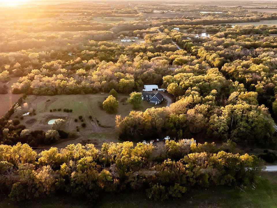 Located 6 miles southwest of Douglass, KS sits this wonderful home and shop on 9 +/- private acres. The property sits on the corner of SW 230th St and SW Meadowlark Road, both of which are well maintained gravel roads. Both roads are lined with mature trees offering a real sense of privacy and seclusion while on the property. The home was originally built in 1993 and added on to in 2007, and has 5 bedrooms and 2 bathrooms. Toal finished area of the home is 4,471 square feet with 3,271 being above grade and 1,200 below grade. Upon entering the home you are greeted by a very spacious kitchen/dining/living area with vaulted ceilings, hardwood floors, and a wood burning stove. The kitchen features a massive island with granite countertops, double wall oven, and plenty of storage space. Additionally on the main floor there is a second living area space, one bedroom, one bathroom and the laundry room. Upstairs sits two bedrooms and one bathroom. Downstairs features another spacious living area and two more bedrooms with escape windows. The roof was replaced in 2020. There is a detached 40x40 two car garage/shop which is perfect for storing your vehicles, equipment, tools and a great space to get some work done. The shop has electricity, concrete floors, a wood burning stove and a work bench.The properties water source is rural water and is on a lagoon for wastewater. If you are looking for a rural home and a place to plant your roots down away from the hustle and bustle of town, this place deserves your attention! For questions or to schedule a showing contact the listing agent.