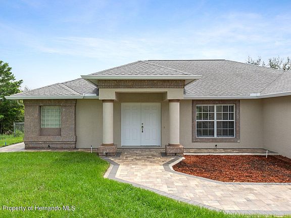 Active under contract - accepting back-up offers. Move-in ready, and updated, this three bedroom, two bath home with a fenced-in back yard is located in Spring Hill within minutes to the Suncoast Expressway. This home features a remodeled eat-in kitchen with new wood cabinets, new granite countertops, new appliances (refrigerator, stove, dishwasher and microwave); a breakfast bar and pantry; a spacious great room with a vaulted ceiling overlooks the screened-in lanai, dining room area located off of the kitchen; master bedroom suite has his and her closets, upgraded master bath with new vanity and toilet; quest bath has also been upgraded with new vanity and toilet; brand new wood laminate flooring throughout the house; new light fixtures throughout the house; new ceiling fans; inside laundry room with new washer, dryer and laundry tub; the interior has been freshly painted in a neutral color; brand new garage door and service door and garage door opener, new a/c system installed in 2023, new brick paver driveway and walkway, new exterior lighting illuminates the house at night and new sod in the front and back of the house.