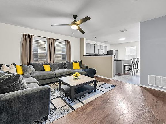Charming 3 bed home in Sendera ranch. Open concept design with spacious living room, large privacy fenced backyard and large primary bedroom which features a garden tub. The kitchen is well-equipped with modern appliances and ample counter space. Located in the desirable Sendera Ranch community you'll enjoy to amenities such as 3 pools, 4 playgrounds, basketball court, 2 soccer fields, hockey rink, ponds and walking trails. You'll also be close to shopping, dining and entertainment. 1 year lease, no smoking