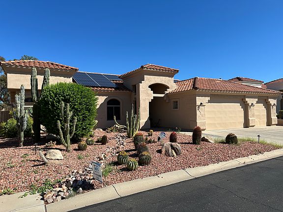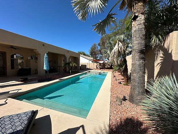 SEMI-CUSTOM HOME with SOLAR! So much potential! Great location near the base of Lookout Mountain in a private subdivision! Can you see this beautiful 3 Bedroom, 2 Bath home as your new home! The spacious open living room, dining & kitchen feature soaring ceilings with Quartz counters, and stainless steel appliances with tile throughout dining and living areas. Ample Master bedroom features a double sink, Glass enclosed private shower, large bathtub and a nice walk-in closet. Huge 3 car garage will house your autos and all your outdoor fun accessories. Enjoy moments of the day in the backyard oasis with a refreshing pool. The desert landscaped garden offer low maintenance so you have only to enjoy this lovely space. Easy access to hiking trails in Lookout Mtn, Shaw Butte or North Mtn.