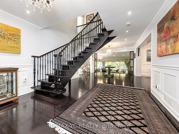 Luxury Living on 4.19 Private Acres - A Modern Retreat in Nature. Nestled within 4.19 acres of lush, forested land, this custom luxury residence offers the perfect blend of privacy, elegance, and modern comfort-just minutes from the city. Beautifully renovated throughout, the home retains its original character with a heritage stone fireplace and striking volcanic stone wall in the living area. Expansive windows frame stunning ravine and forest views, letting you enjoy the beauty of every season from your living room. The chef-inspired kitchen features a large island and premium Miele appliances, including a built-in coffee machine, steamer, and warming drawer. A spacious office overlooking the backyard provides an inspiring workspace surrounded by nature. Upstairs, the primary suite is a private haven with a eletric fireplace, sitting area, and spa-like ensuite with heated floors. Additional bedrooms offer custom built-ins, large closets, and panoramic windows. The finished basement adds flexible recreational space, while modern updates include a 200 Amp electrical panel, new mechanical systems, and a comprehensive security system. An automatic gated entrance and private driveway lead you through serene woodlands to this exceptional home-where luxury meets tranquility in a truly rare natural setting. **3D Floor plan Link attached