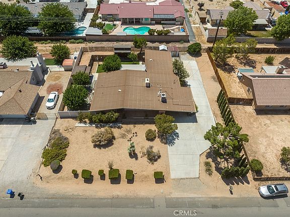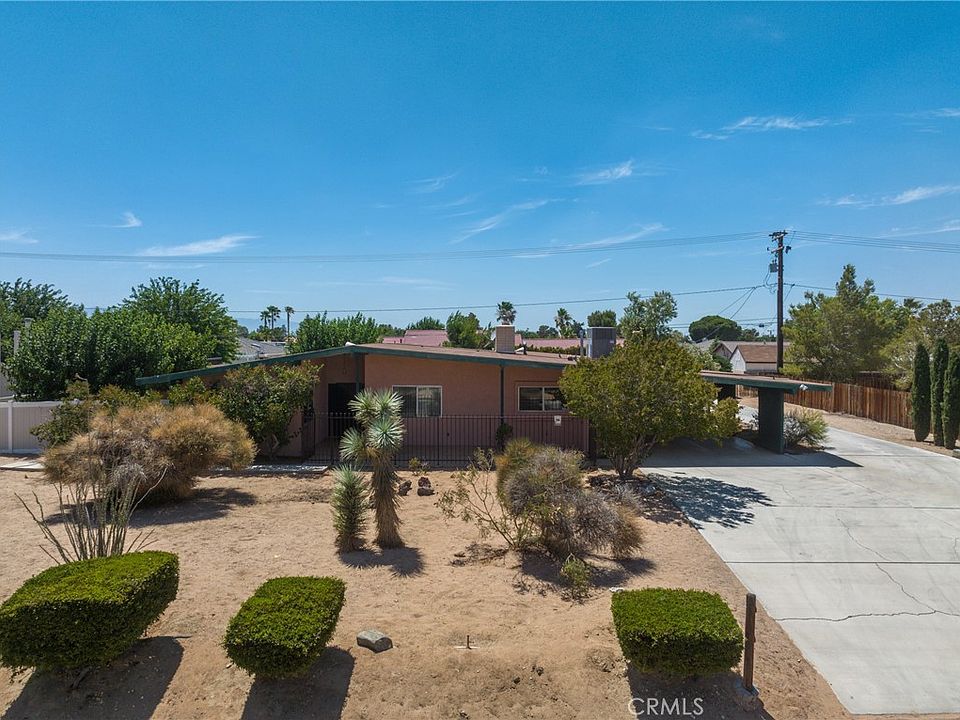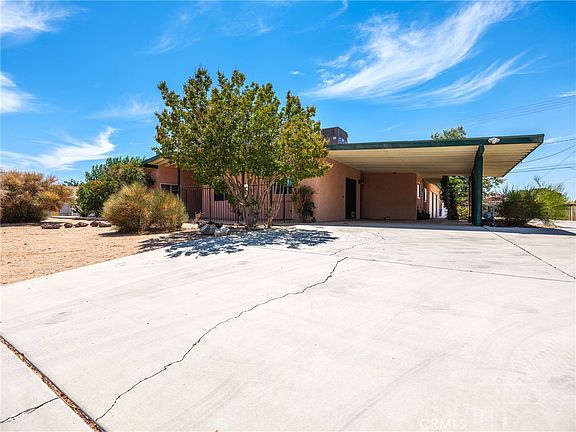 Great home-original owner, has had excellent care. Relax and enjoy the wonderful Apple Valley lifestyle. Gated entry to nice front porch. Split floorplan. Primary bedroom has an added-on office or craft room. In the living room, there is a wonderful wood-burning insert in the fireplace. Living room has French doors that lead to a beautiful covered patio, and private rear yard. Dual pane windows throughout. Two heating/air conditioning units. In the Primary bathroom, there is a walk-in bathtub, and two sinks. Ceiling fans in all rooms. Storage, storage and storage in this home. Separate laundry room, with sink. Two sheds, Mom's shed on south side, with electricity and lots of storage. Dad's shed on west with electricity and storage. See photos. Patio has two ceiling fans, and awning screens. This covered patio has tinted concrete. In the rear yard there is a clothes line and one more small storage shed. All fenced. Dog run. Oversized garage with workbenches, and a safe. One of the nicest features of this home is a carport as well as an oversized 2 car garage. Automatic watering to mature landscaping.