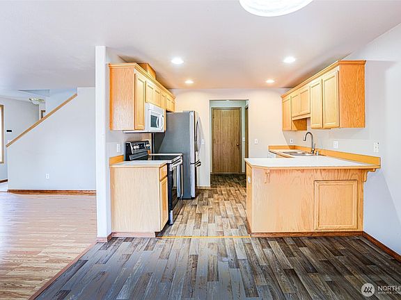 Welcome to the Briarwood community! This well-maintained 3-bedroom, 2.25-bathroom home features a spacious, open-concept main floor, complete with a modern kitchen, cozy living room with gas fireplace, utility room, and sliding doors leading to a large deck—perfect for relaxing or entertaining. Upstairs includes a generous primary suite with a walk-in closet and private bath, plus two additional bedrooms. Recent updates include a brand-new water heater. Enjoy low-maintenance living with an HOA that covers lawn care, common areas, and partial insurance. A children’s playground is located just next door. Conveniently situated near I-5, shopping, dining, JBLM, top-rated schools, and more, this home offers comfort, convenience, and community!