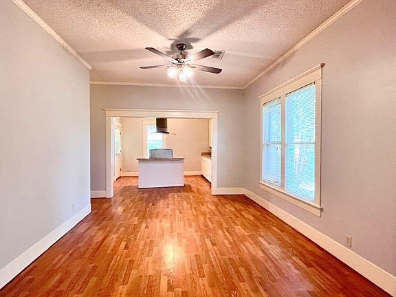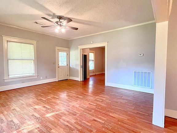 This inviting home boasts a charming covered front porch and high ceilings that create an open and airy atmosphere. The property, situated on a corner lot, features spacious wooden floors throughout. With two full bathrooms and a good-sized lot, there is ample room both inside and out. The kitchen comes equipped with a stove. Please note, no pets are allowed, and tenants are responsible for all utilities.