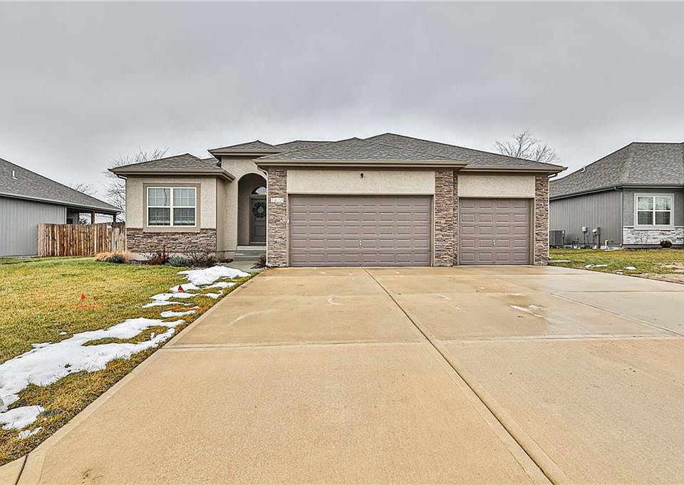 Entertainers... You cannot miss this home! Grain Valley School District, built in 2022! Such an inviting home on a dead-end street. Walk into a beautifully built hall tree as you absorb this spacious open floor plan. Full privacy fence w/extended deck added for entertaining. Kitchen window overlooks a peaceful green space. Front landscaping was upgraded in Spring 2023. Stunning fireplace and mantel in the living room. Granite countertops in kitchen and all 3 full size baths! 3 bedrooms upstairs with 2 full baths. Laundry room is upstairs off the primary bedroom walk-in closet. 4th bedroom in the finished basement w/additional full bath. 2nd living room with bar, perfect for your large tv or projector. Don't worry, you will have plenty of storage with the large unfinished storage room as well. Kitchen refrigerator stays with the property. This is a must see, schedule your tour today!