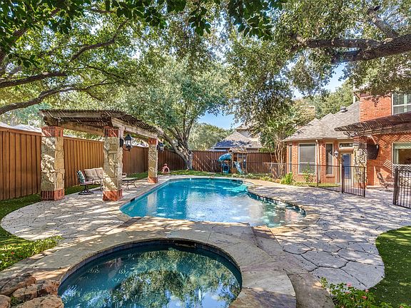 Outdoor living offers a pool, spa, water feature, covered patio, pergola, and wrought iron fencing—ideal for entertaining or relaxing. Convenient to West Plano ISD schools, nearby parks, shopping, dining, and major roadways. Security System and Sprinkler System!