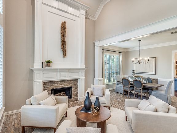 The updated kitchen includes quartz countertops, stainless steel appliances, a built-in refrigerator, island, walk-in pantry, and breakfast bar. The family room features floor-to-ceiling windows overlooking the backyard and pool, built-in bookshelves and cabinets, brick fireplace with gas logs! Formal living and dining rooms with brick pavers, a study with wainscoting, and a curved staircase enhance the home’s architectural appeal.