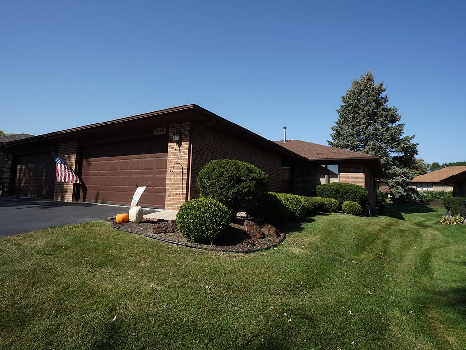 Life made easy with this brick 2 BR ranch style condo. Open concept living and dining. LR slider provides lots of natural light and access to the deck where you can enjoy lemonade and the lovely yard that you do not have to maintain. Relax with your morning coffee and pastry in the breakfast nook next to the kitchen with ample cabinet and counter space. Stay organized with a conveniently located command center for putting down mail and keys. Built in cabinets and shelving in kitchen and dining area. Push up your sleeves and put your stamp on this property. 2 car garage. First floor laundry. One and a half baths. Great location close to shopping, entertainment and quick access to highways. Full basement for storage and possible future expansion. AS IS. Radon mitigation system. A/C 2021, furnace 2019, water heater 2018. Rentals not allowed. Preferred closing in January 2025.