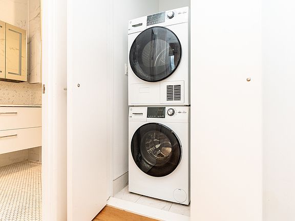 Experience modern luxury in this oversized condo-style 2 bedroom with soaring floor-to-ceiling windows and a spacious private balcony. A sleek Bertazzoni kitchen with abundant storage, heated bathroom floors, and an in-unit washer/dryer elevate everyday living. Exceptionally large and filled with natural light, this home truly exceeds what photos can capture. The building offers refined amenities including an elevator, residents' lounge, and roof deck.