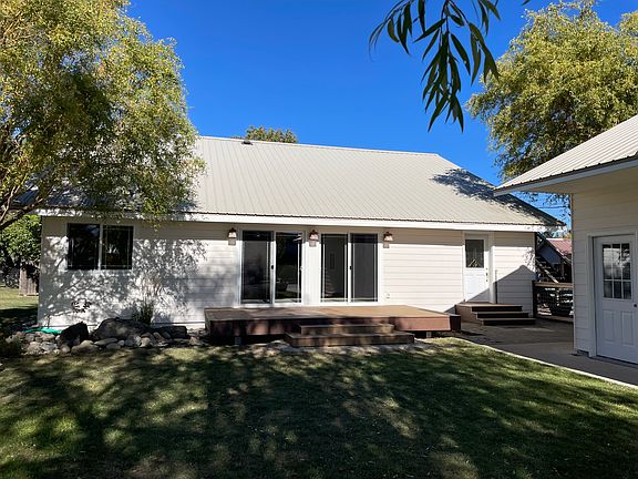 Clean and welcoming home with large comfortable spaces. Big yard with nice decks, a large covered patio, a fire pit and an 8x10 shed. Laundry room with brand new washer and dryer. Open kitchen with a combination electric&gas cooktop, wall oven, dishwasher and microwave. Large dining area or family room with double sliding doors to a large front deck. Slate tile entry and living room with cozy gas fireplace furnace. Large master bedroom with attached bath, walk-in closet and a private deck. Sizable second bedroom with room for a bed plus a sitting area and dresser/tv nook with small walk-in closet and a private deck. Close to the 2nd bathroom with soaking tub/shower. Features a third bedroom/bonus room near main living spaces, plus a small office nook in hallway. New mini-splits for heat and air-conditioning and new, attractive quality windows throughout.