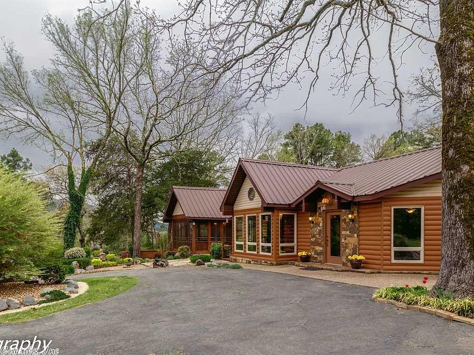 Experience fabulous country living in this 2300s/f gorgeous custom home w/3 bedrms/2 baths built in 2004 on 12 acres just 3 miles from downtown Hot Springs. Everyone loves the peace, privacy & natural beauty. It has attached garage, lg screen porch & low maintenance ext. finish, including standing seam metal roof. Combo of cedar wood, 3 inch solid stone flooring & expansive windows welcome you. Vaulted/beamed living w/lg stone fp w/wood floors. Includes 1800 s/f sep. bldg w/workshop & apt.