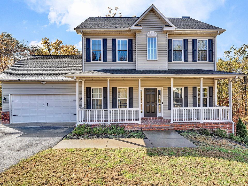 Welcome Home! Nestled in the desirable Virginia Ridge neighborhood, this spacious two-story gem is just minutes from Vinton and Smith Mountain Lake. Step inside to stunning hardwood floors, soaring 9-foot ceilings, elegant crown molding, and modern lighting throughout. The open-concept kitchen boasts granite countertops, stainless steel appliances, and a stylish tiled backsplash--flowing seamlessly into the dining and living areas, ideal for entertaining. Relax on the back deck with serene views of the private, newly fenced backyard. The main level features a dedicated office and formal dining room. Retreat to the expansive primary suite with a luxurious en-suite bathroom, including a separate shower, soaking tub, double vanity, and walk-in closet. The fully finished walk-out basement offers brand-new LVP flooring, an electric fireplace, custom built-ins, a full bathroom, an additional room (perfect for a home office), and a cozy reading nook. Enjoy added peace of mind with new security cameras and floodlightsno subscription required. All this, plus the advantage of low Bedford County taxes!