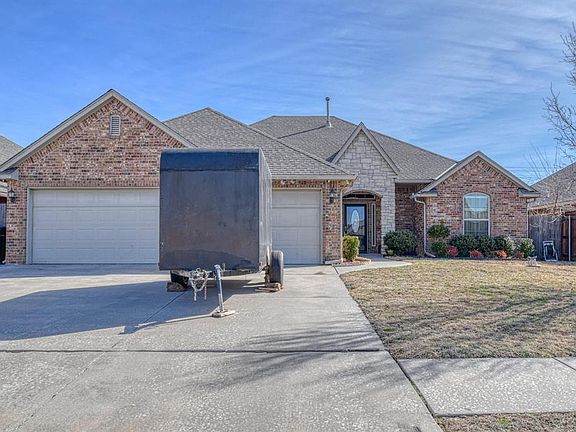 This 3 bed 2 bath home has an open living room with 10 foot ceilings, wide crown molding and a corner fireplace. The kitchen opens to the living and dining space and has abundant storage, granite countertops and an island. There is a large walk in in pantry with a countertop and pull out drawers and shelving. This would be a great place to leave the toaster, crockpot and mixer plugged in and ready to use. The mud bench is directly off the 3 car garage. Each of the secondary bedrooms have walk in closets.The primary closet has built in drawers and the bath is huge and features separate vanities, a jetted tub and shower. Easy access to I35 and I240 with a fast commute to Tinker Air Force Base, Boeing and Amazon. Professional photos coming soon.
