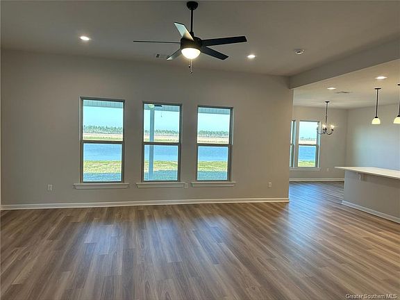 Backs to Pond - Band New Construction in the Moss Bluff area community of Porter's Cove built by DSLD HOMES! The COGNAC V H has an open designed floor plan with 4 bedrooms & 2 bathrooms. This home includes an upgraded quartz counters, gas range, undermount sink for all vanities & more. Special plan features include undermount kitchen sink, luxury vinyl plank flooring in living room & wet areas, energy efficient appliances (range, dishwasher & microwave hood), garden tub & separate shower in master suite, tankless gas water heater, low E tilt-in windows, smart connect Wi-Fi thermostat, covered rear porch, post tension slab, fully sodded yard & so much more!