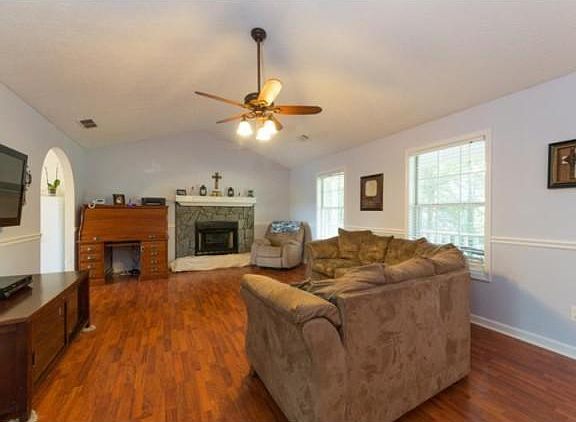 Beautiful home with plenty of room in quiet, safe neighborhood. Located in cul-de-sac with hay fields behind property. Large, wood-floored shed with three rooms, electrical outlets, lights, and fans. Living room is huge and has a vaulted ceiling, built-in-bookcase, fireplace. Garden tub in master bath. Double garage was closed in and carpeted by previous owner and makes a great rec room. Separate laundry room. New roof and water heater end of 2015. Double carport on property, dog kennel. Garden area. Rocking chair front porch and deck in back.