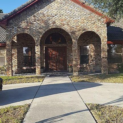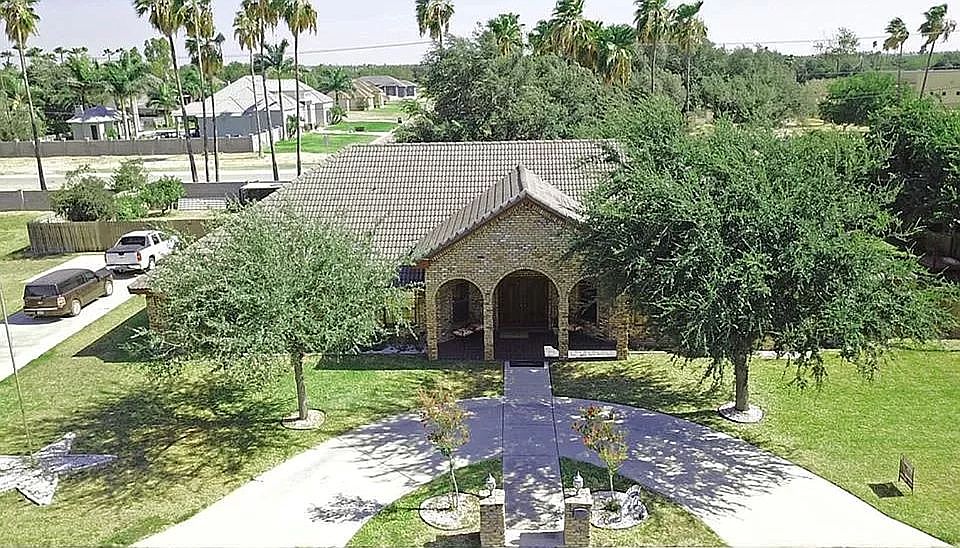 Beautiful Custom built home with 4 bedrooms, 3.5 baths, bonus room, indoor laundry with sink, built in cabinets, folding and hanging area and a pull out wall iron board. Open concept with split rooms. This home sits on a 1/2 acre lot within the Palmview city limits off the expressway near the H.E.B and other shopping centers. The home features all tile flooring, fabulous 2 door entry into an amazing 12' by 8' foyer, high ceilings, with views to the formal dining, formal living, and the open concept area which includes a custom kitchen with built in high end appliances (included), pull out pantry, eating island, eating nook, wet bar, and a family room with built in entertainment unit. The layout of this home is fabulous. All shared areas in the middle. On one side of the house there are 2 large bedrooms with built in desk, and built in drawers in the closets, a bonus room, a full handicapped accessible bathroom with large walk in shower, a split door for privacy. The mud area leads to the garage. The garage is a large 2 car parking space, and storage. (shelves included) The key-less pads allow entry to the garage and home without a key. This side of the house also has a guest bath, plus a small pantry closet. The other end of the house features 2 master bedrooms. One of the masters has a jetted tub, two sinks, a makeup vanity, private toilet room, a walk in shower and a large walk in closet. The second master has a large bathroom with a large walk in handicapped accessible shower, built in drawers and a large 2 door closet. Everything in this home is custom. Original old Chicago brick, clay roof, vintage glass door knobs, custom shutters, surround sound, security system, Music intercom, internal vacuum system, 2 doors leading to the enclosed living area patio. This patio is 408 sq ft of extra space to use as you like. It overlooks the yard. The back yard is fenced there is a sitting covered bar area, a concrete sitting/eating/entertaining area with a large grilling/bbq, a gas log fireplace, a sink, storage and serving area. There is a his/hers bath house. A floating bed, a fire pit, large mature trees, including citrus trees. A dividing fence surrounds an undeveloped area that has storage that is big enough for future pool, or any other type of builds. The house has surround light all around the back. Outdoor outlets for xmas lights. The front of the house features a large 205 sq ft of sitting porch, a circular drive way, and sprinkler system. We welcome offers. (call or text Laly 956-458-6659 to schedule an appointment) Will work with buyer agents