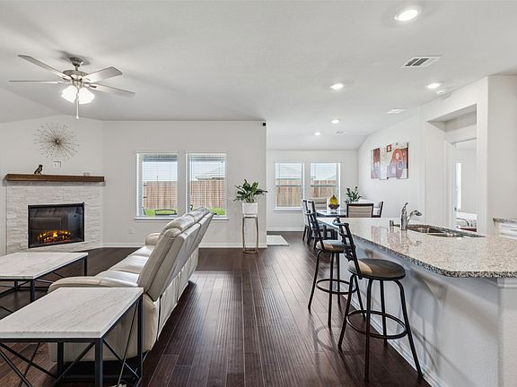$0 down loan available!! AND all furniture can stay with acceptable offer. Why wait for a new construction home, when you have the opportunity to get in on this gorgeous single story turn key that is fully loaded with upgrades guaranteed to impress! Premium lot with great curb appeal and show-stopping lake view directly across the street! Once inside, you are welcomed by a beautifully designed interior featuring soft neutral tones and rich hardwood floors that flow effortlessly throughout the areas. The heart of the home is an open-concept family room bathed in natural light, seamlessly connected to large chef's kitchen—perfect for entertaining. This culinary dream is anchored by a large center island and outfitted with stainless steel appliances, a gas cooktop, elegant granite countertops, a walk-in pantry, and a sun-drenched dining area. The primary retreat is tucked away at the back of the home, and features an ensuite with dual sinks, walk-in shower, linen closet, and large walk-in closet. The 4th bedroom is also split from the other two bedrooms - making for a great office or guest bedroom! This Texas-size backyard makes entertaining a breeze, offering a covered patio, and tons of room to create the ultimate outdoor living space! Fabulous resort-style amenities that make every day feel like a vacation! Verandah neighborhood amenities include 2 fishing ponds, 2 amenity centers pools, splash pads, green belts, hiking trails, beach volleyball, soccer field, kids playground, basketball court, and a dog park. Royse City ISD.