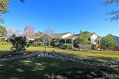 SPRAWLING RANCH STYLE CUSTOM HOUSE. Gorgeous single story residence situated on prestigious shaded tree-lined street. Enjoy extensive renovations inside & out. Approx. 3,550 sqft. with 5 bedrooms and 5 baths. Professionally decorated with light neutral colors throughout. Oak hardwood floors, quality carpeting, plantation shutters, and French doors. Updated kitchen with stainless steel appliances and eating nook. Luxurious Master suite boasts a sitting room with fireplace plus a lavish spa bath. Great room family room boasts attractive beamed ceiling. Indoor laundry room. Recent upgrades include: plumbing, dual water heaters, and a 3-car garage. Beautifully landscaped over 1/3 acre grounds with a charming brick courtyard with fountain.