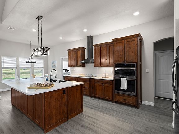 Thoughtful extras include a tankless water heater, whole-home generator hookup, and a discreet hidden safe room. The oversized two-car garage offers room for vehicles and storage.