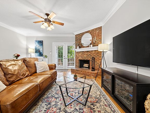 Crown moldingHardwood floorsBrick frontThoughtfully updated kitchenNeutral paintGranite countertopsCozy brick fireplace