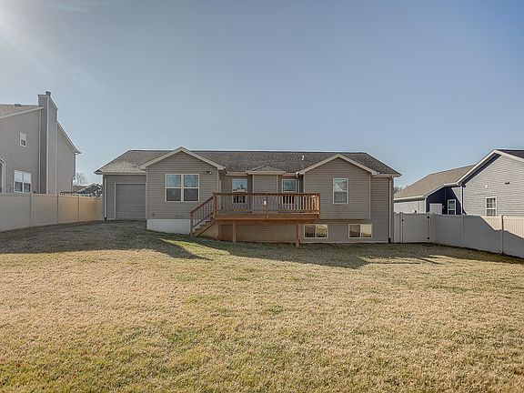 Great open floor plan 5 bedroom, 3 bath ranch in Keck Ridge. Hardwood floors in main common areas. Gas fireplace in living room. Eat in kitchen with island and sliding glass doors to large wood deck. Master bedroom suite with walk in close, double sink, separate shower/tub and linen closet in master bathroom. 2 additional bedrooms, laundry and full bath on main floor. Look out lower level features family room, bedrooms 4 and 5, office space, rec/flex area, large bath with shower and linen closet, and unfinished storage space with shelving. Large back yard and 3 car tandem garage. Agent Owned