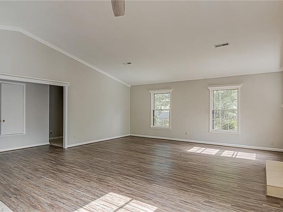 Welcome to 1404 Manard Lane in Greensboro! This inviting 3 bedroom, 2 bath home offers easy one level living and a freshly updated feel. The spacious living room features vinyl plank flooring, vaulted ceilings, abundant natural light, and a beautiful brick fireplace as the centerpiece. The kitchen includes stainless appliances, an island with seating, and plenty of cabinet space. Fresh interior paint and newly cleaned carpets make this home move in ready! Step outside to enjoy the large deck overlooking a private, wooded backyard with a separate fenced in dog lot. A storage shed provides extra room for tools or hobbies. Conveniently located near shopping, dining, and major highways, this home blends comfort, space, and location all in one charming package.